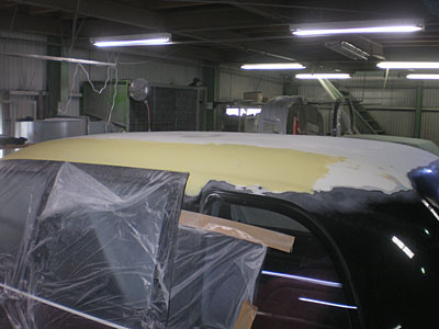 ◆トヨタクラシック(ルーフ塗装)ルーフの下地作業をしています。