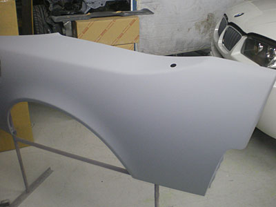 ◆NSX(事故修理)クォーターの下地作業をし、サフェーサーを吹きました。