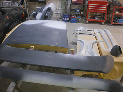 ◆セリカ(WRC仕様) 左フェンダーの成形中です。仮のサフェーサーを入れました。