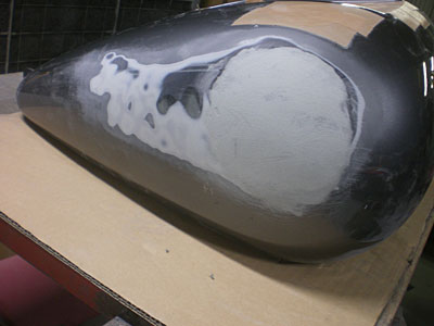 ◆ハーレーXL883R(バイク塗装)タンクの下地作業をしました。