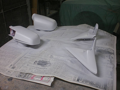◆セリカ(WRC仕様) 左フェンダーの成形中です。仮のサフェーサーを入れました