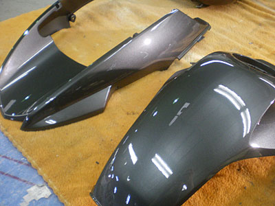 ◆パニアケース(バイク塗装)磨き作業をしています、明日には完成・梱包をしたいと思っています