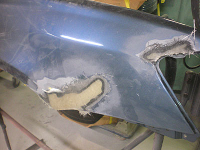 ◆セリカ(WRC仕様) 左フェンダーの成形中です。仮のサフェーサーを入れました