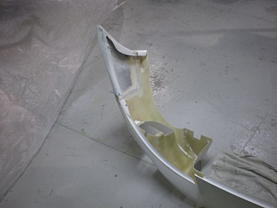 ◆セリカ(WRC仕様) 左フェンダーの成形中です。仮のサフェーサーを入れました