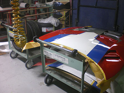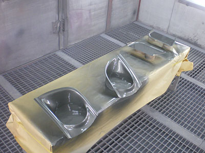 ◆スープラ(事故修理)ボンネットは5色目を塗装し、全体をオーバークリヤしました。フロントバンパー引き続き加工中です。