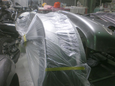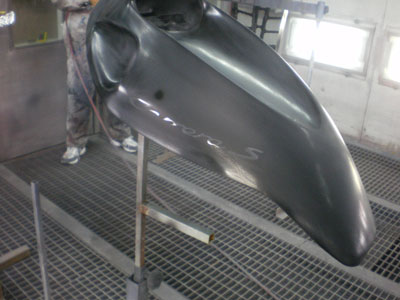 ◆GSXR750(カウル補修)次は塗り分けラインを決めますので、オーナー様の御来店を