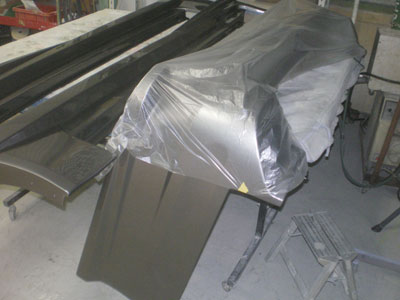 ◆セリカ(WRC仕様) 左フェンダーの成形中です。仮のサフェーサーを入れました