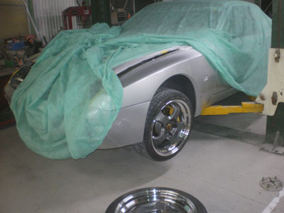 ◆ポルシェ911(全塗装)ライン貼り作業中です