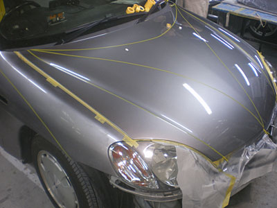 ◆ポルシェ911(全塗装)ライン貼り作業中です
