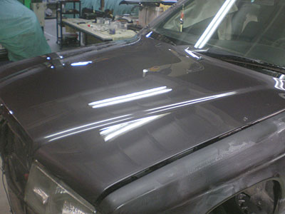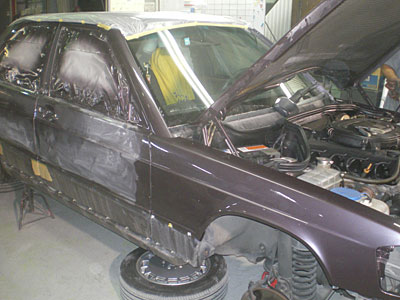 ◆ベンツ190(全塗装)2色目を塗装しました。本体は磨き作業に入りました。タイヤを外しました。