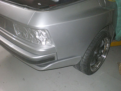 ◆セリカ(WRC仕様) 左フェンダーの成形中です。仮のサフェーサーを入れました