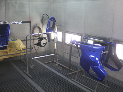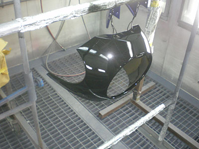 ◆GSXR750(カウル補修)次は塗り分けラインを決めますので、オーナー様の御来店を