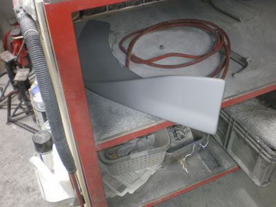 ◆セリカ(WRC仕様) 左フェンダーの成形中です。仮のサフェーサーを入れました