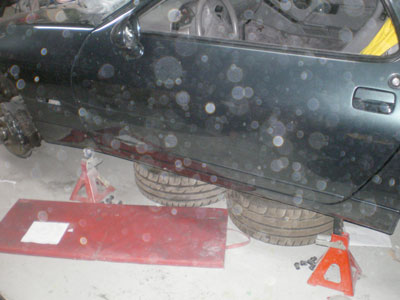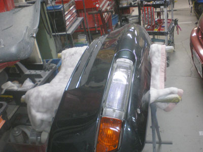 ◆928(全塗装)左ドアを組み付け、バンパーを載せる準備をしています