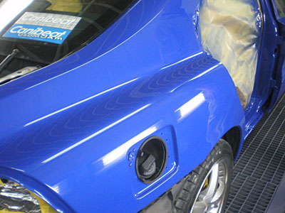 ◆セリカ(WRC仕様) 左フェンダーの成形中です。仮のサフェーサーを入れました