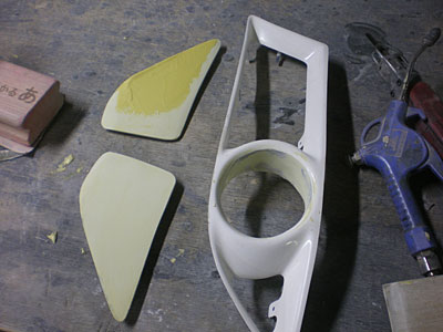 ◆セリカ(WRC仕様) 左フェンダーの成形中です。仮のサフェーサーを入れました