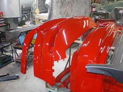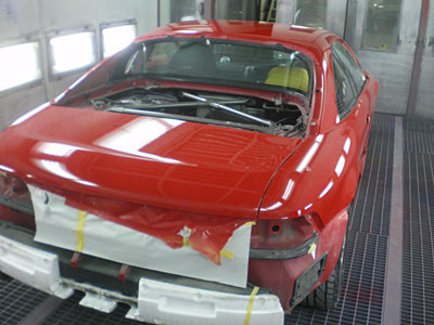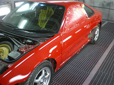 ◆MR2(全塗装)本体磨き作業中です。本日小物を塗装し、これで塗装作業が終わりました。明日引き続き磨き作業をします