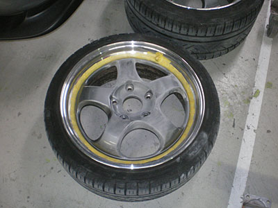 ◆944(ホイール塗装他)ホイールの下地作業をしています