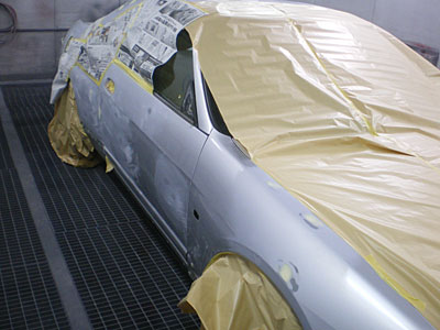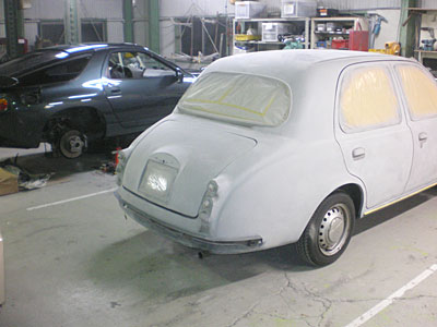 ◆R33スカイラインGT-R(全塗装)分解作業がほぼ終了、下地作業をしています。明日も本体の下地作業&ガラスを外す予定です。