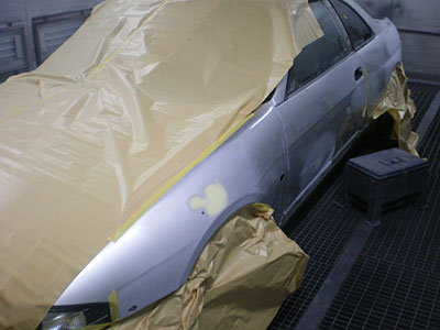◆セリカ(WRC仕様) 左フェンダーの成形中です。仮のサフェーサーを入れました