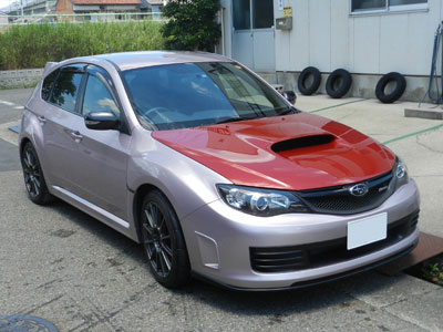 ◆インプレッサ(全塗装)日曜日納車しました、有難うございました。綺麗なピンクはvitzのピンク、フードはオーリスの赤です。