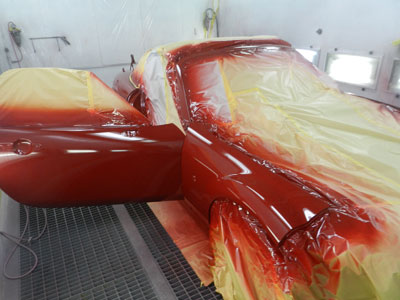 ◆ロードスター(全塗装)本体塗装しました、今回の色はフェラーリのロッソムジェロです、光によって見え方がかなり変わってしまいます