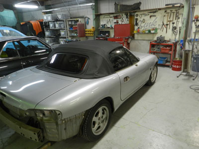 ◆Will(全塗装)ソフトトップのコーティングをしました、写真の右半分がコーティング済み。