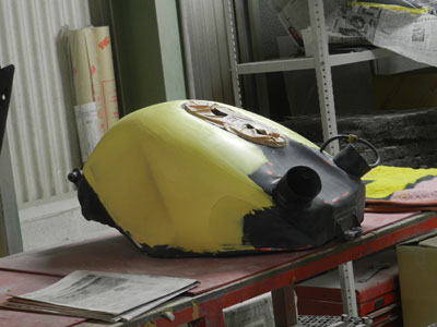 ◆RVF(カウル塗装)タンク修正しています、アッパーカウル穴を埋めています