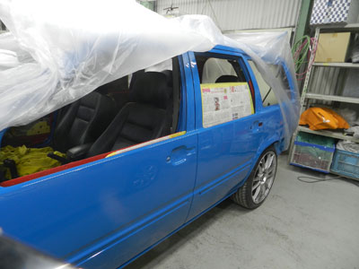 ◆ボルボ(全塗装)本体磨きが終了。(最終磨きは組付け後に行います)リヤドアを磨き、取り付けました。明日もリヤバンパの下地作業を進めます。