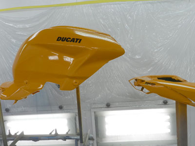 ◆DUCATI(バイク塗装)オーバークリアをしました、磨いたら完成です