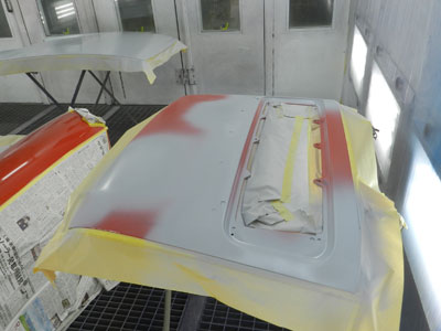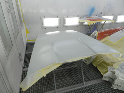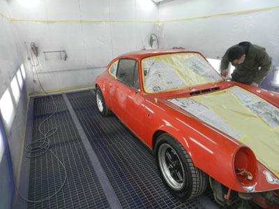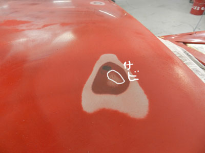 ◆930(全塗装)単体下地処理中、本体下地処理中。ルーフに錆が散見されますので、剥離をすることにしました