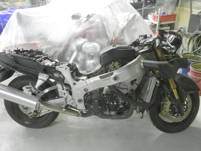 ◆BMW R100(カウル塗装)ラインを貼るために研ぎを入れました。