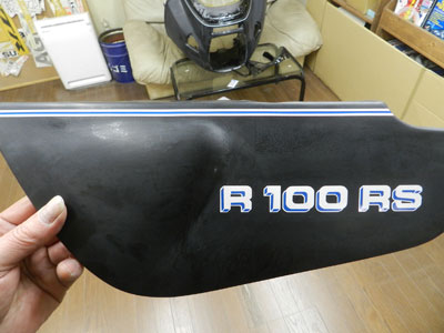 ◆BMW R100(カウル塗装)ラインを貼っています。