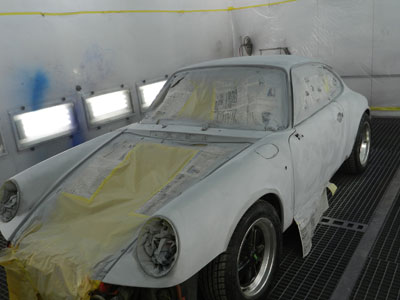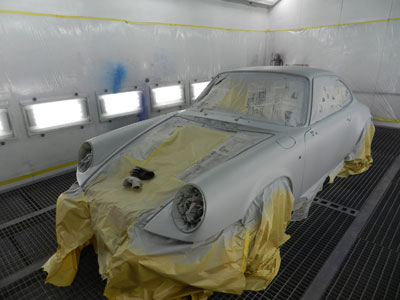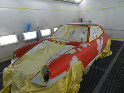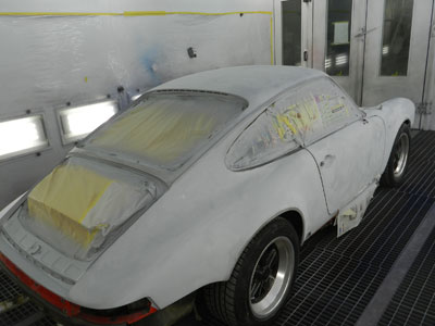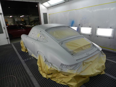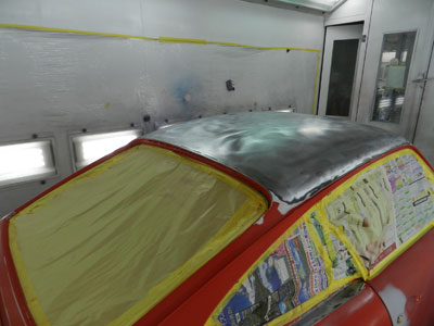 ◆930(全塗装)本体下地処理中、ルーフを剥離しました。全体にサフを入れて、研ぎを入れています。