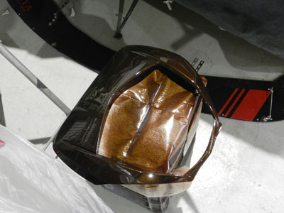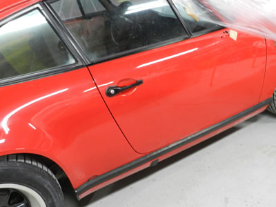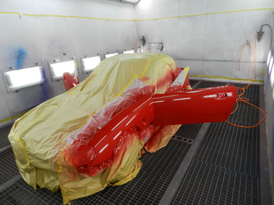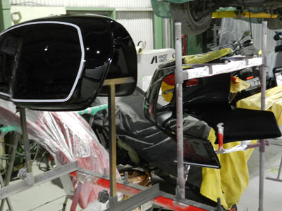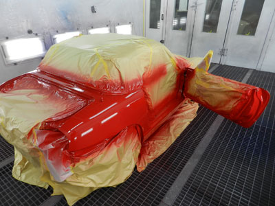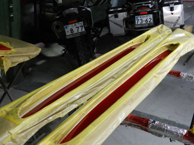 ◆セリカ(全塗装)磨きが概ね終了、塗りわけのマスキングをしています。