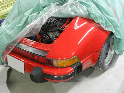 ◆カイエン(パーツ塗装)カーボンボンネットの養生をしました