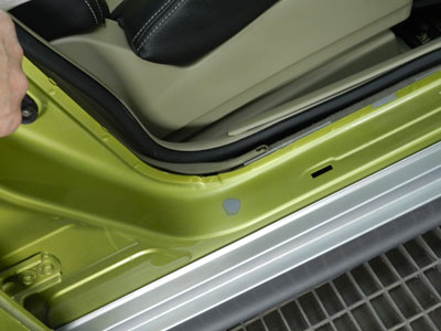 ◆ティーダ(全塗装)ピラーステッカーを張り替えました。ドア内の補修をしました