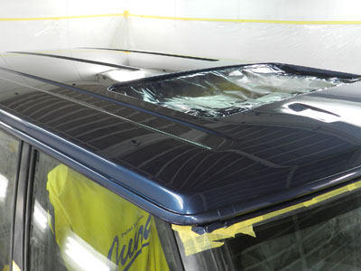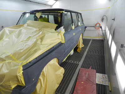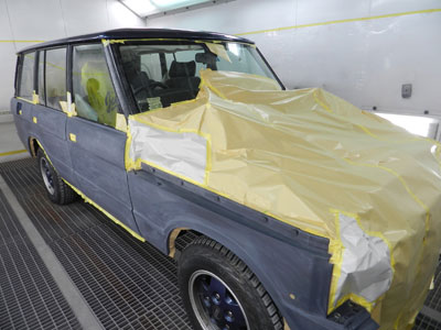 ◆レンジローバー(全塗装)ルーフの塗装をしました。ボディのマスキングをしています。