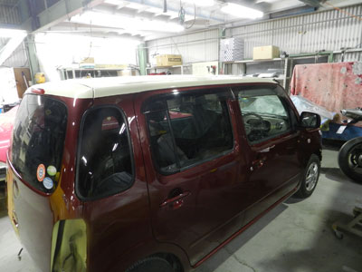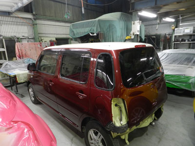 ◆ミラココア(全塗装)単体を塗りました、少し手直しをしたので、明日バンパーを組み付けて完成です。