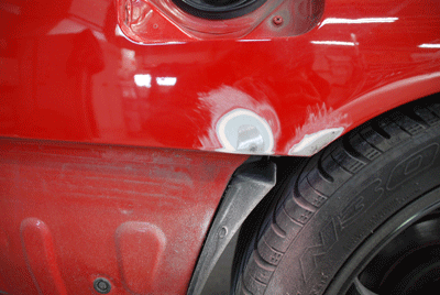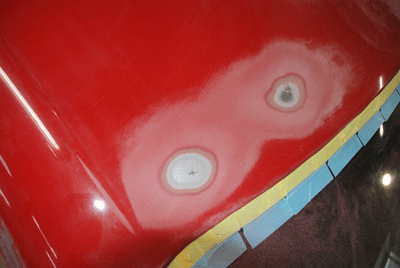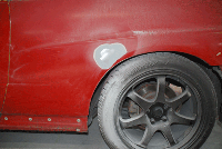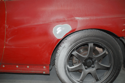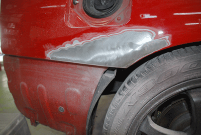 クォーターに錆があり、室内側を確認したところ室内側のほうが広範囲に錆びていました。この部分は鉄板が合わさっているので完全な除去は難しい状態です。
