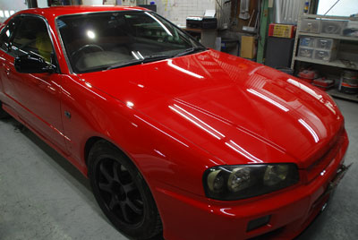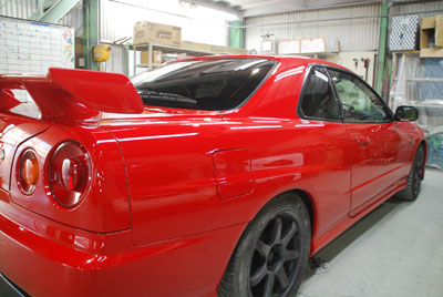 ◆R34(全塗装)組み付け完了、仕上げもほぼ完了しましたが、ミラーだけ手直しをしています。