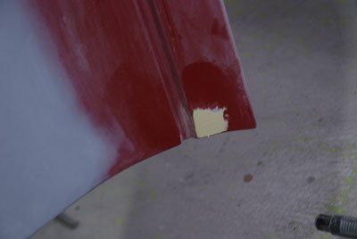 ◆アルファ75(補修塗装)下地処理中、予想外に広範囲に成ってしまいました。