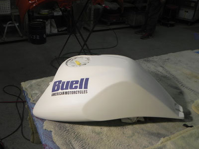 ◆BUELL(タンク塗装)若干手直しを含め明日もう一度クリアを塗ります。