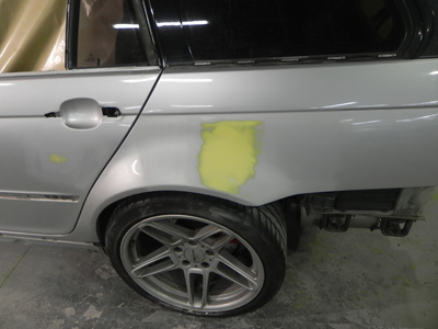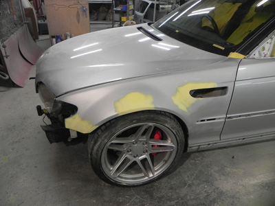 ◆マセラティ(飛び石修理)入庫しました、保険会社が立会いに来ました。