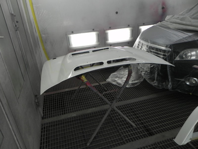 ◆マセラティ(飛び石修理)入庫しました、保険会社が立会いに来ました。