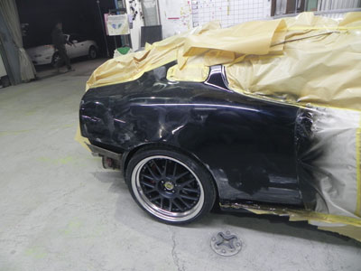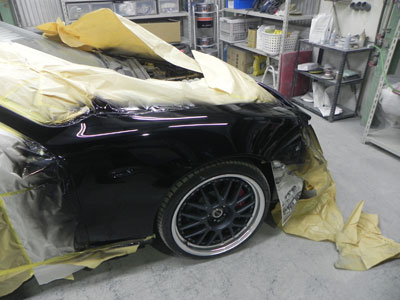 ◆マセラティ(飛び石修理) 本体塗装しました、磨いています