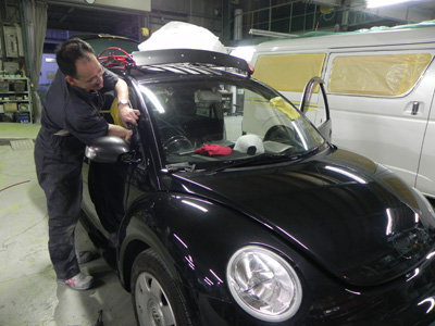 ◆ビートル(全塗装)単体部品の磨き作業完了、組付けをしています