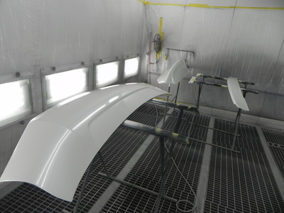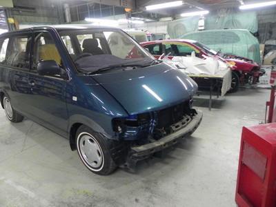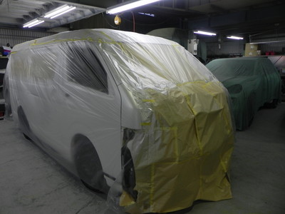 ◆ハイエース(保険修理)本体磨きしました、単体塗装中
