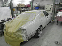 ◆セドリック(全塗装)単体下地処理中、本体磨いています