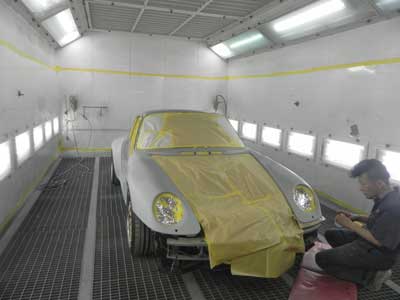 ◆ポルシェ993tb(全塗装)マスキングをしています